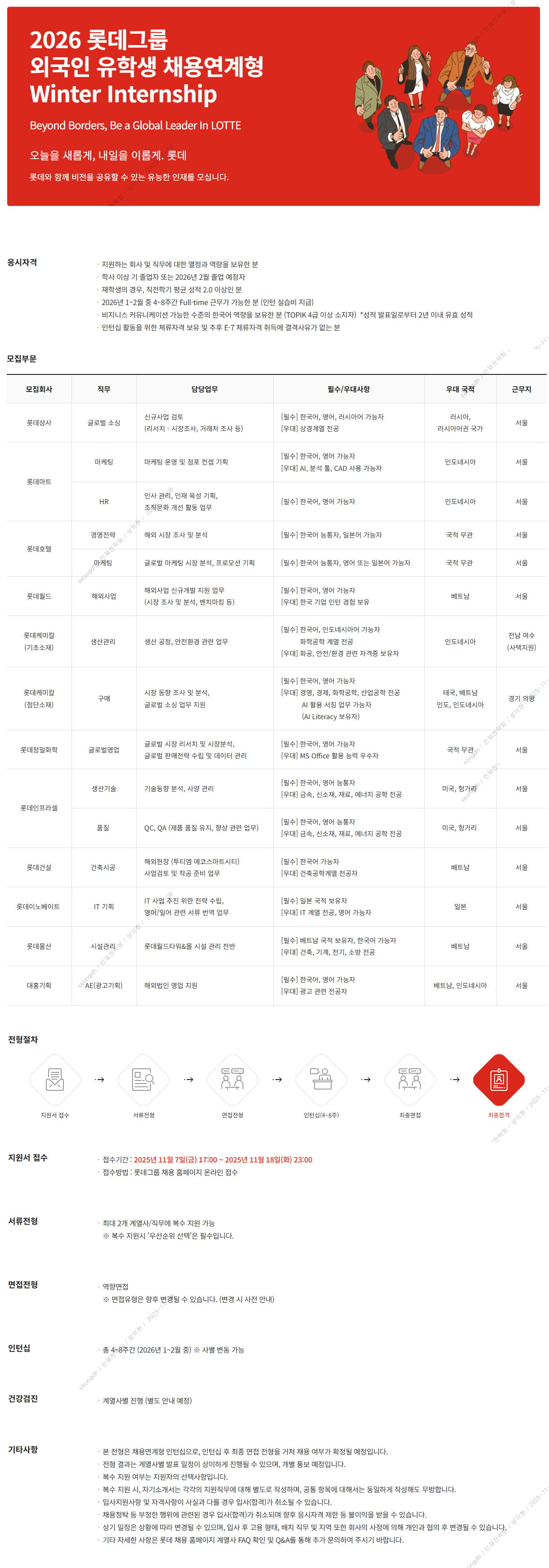 [롯데그룹] 2026 외국인 유학생 채용연계형 Winter Internship 모집 공고