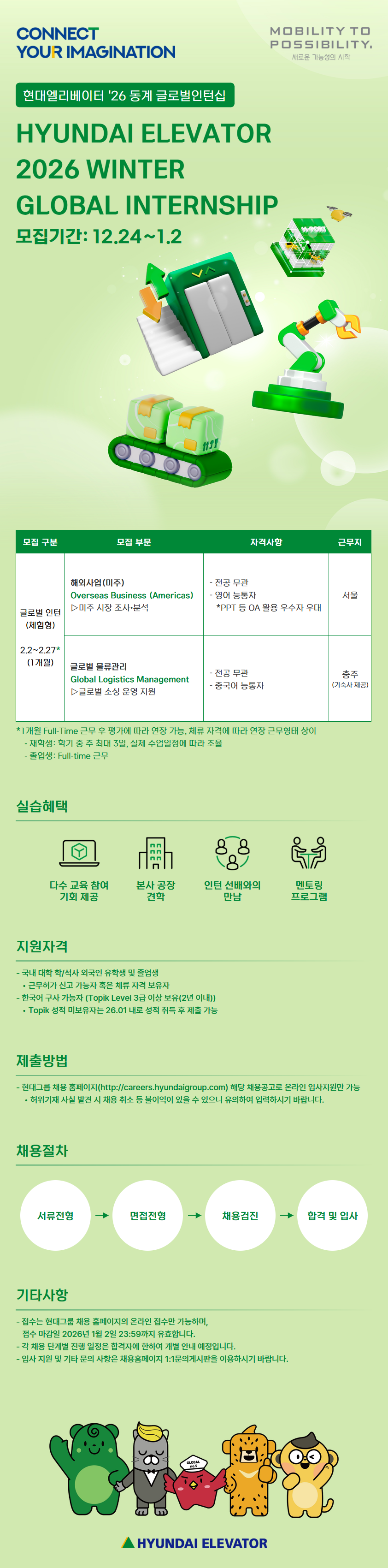 현대엘리베이터 2026 Winter Global Internship (외국인 유학생 대상 체험형 인턴)