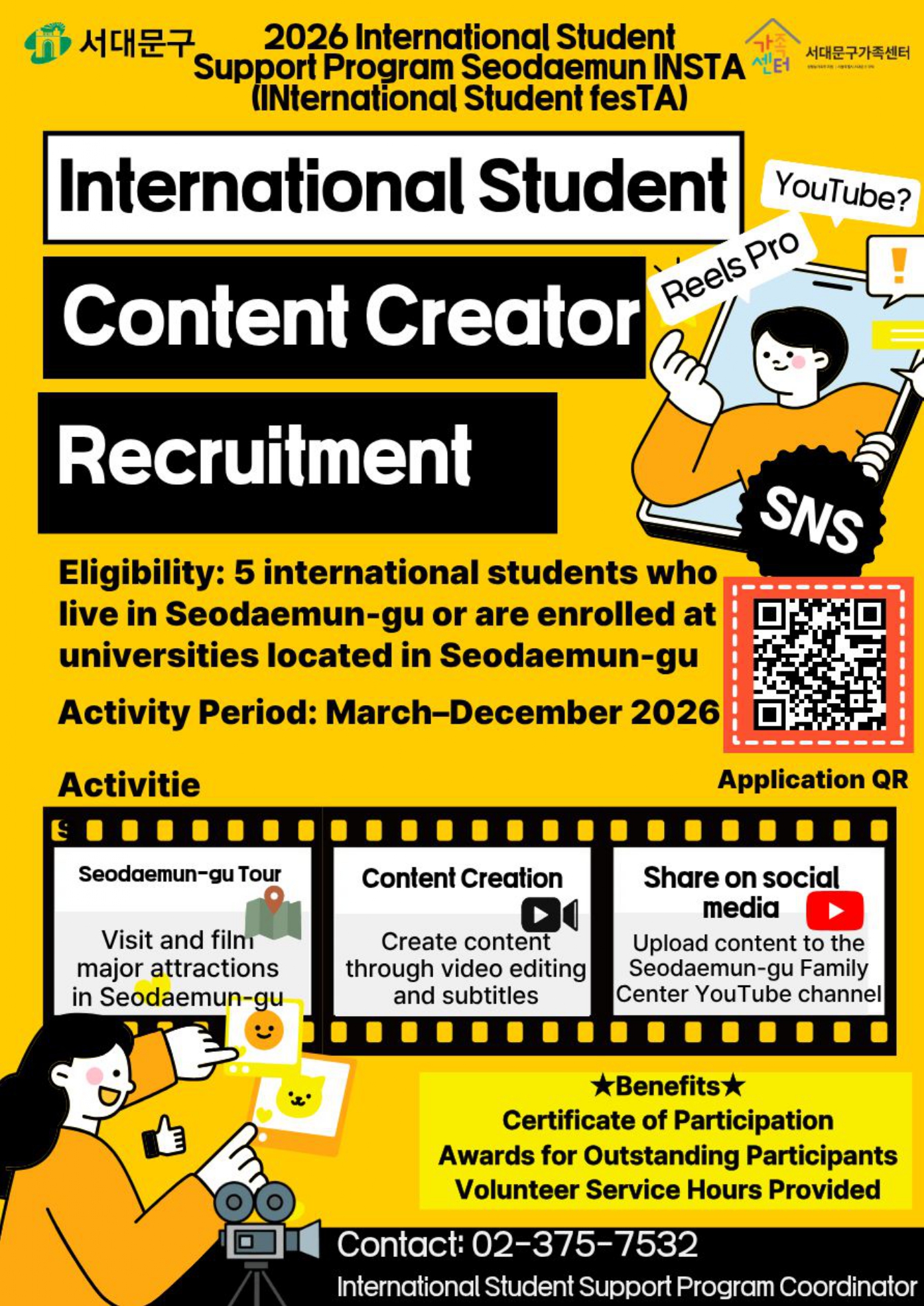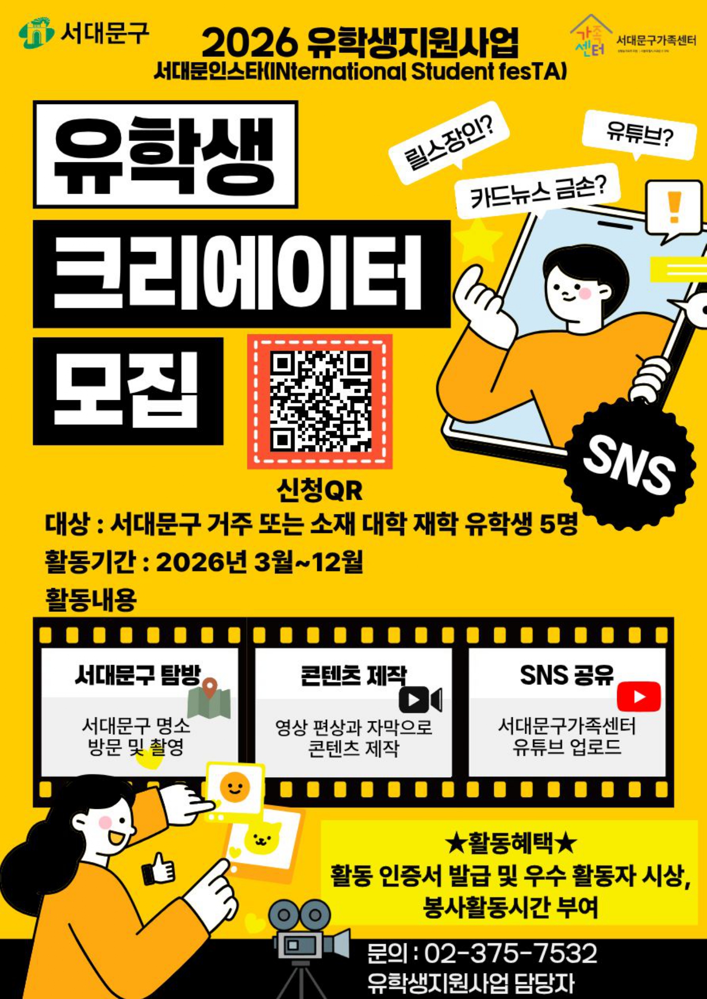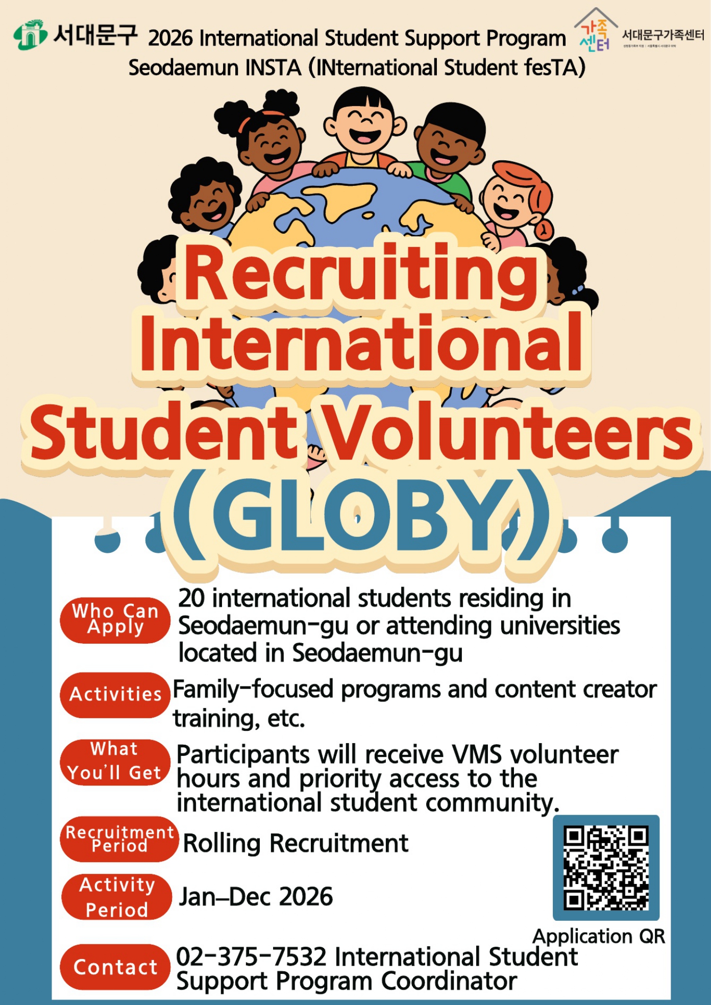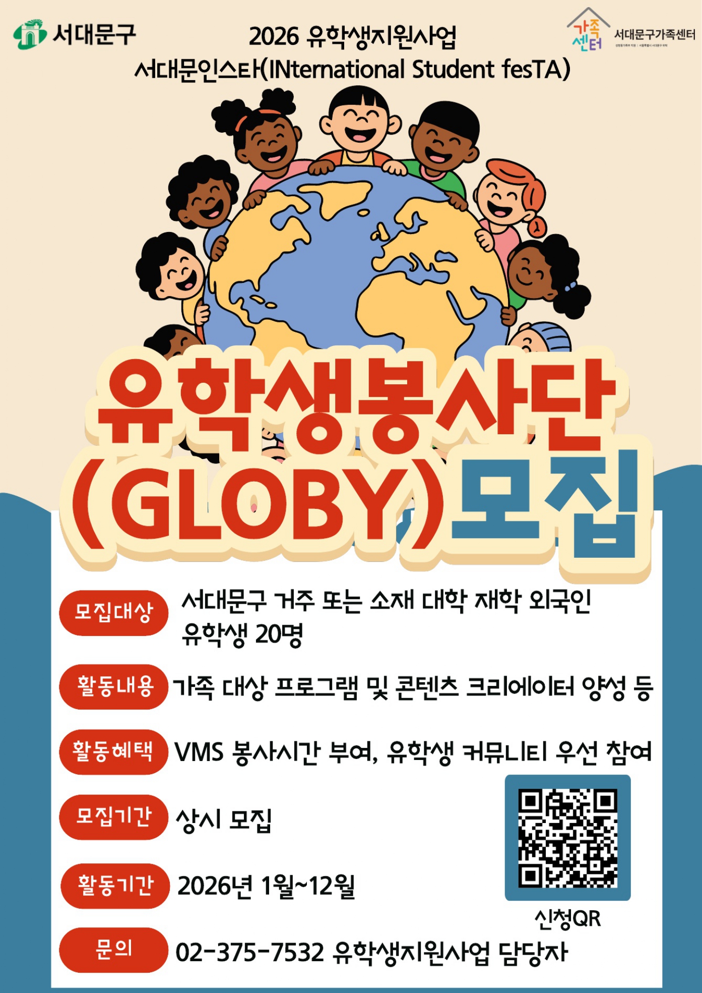 [서대문구가족센터] 2026 유학생지원사업 유학생봉사단(GLOBY) 및 유학생 크리에이터 참여자 모집