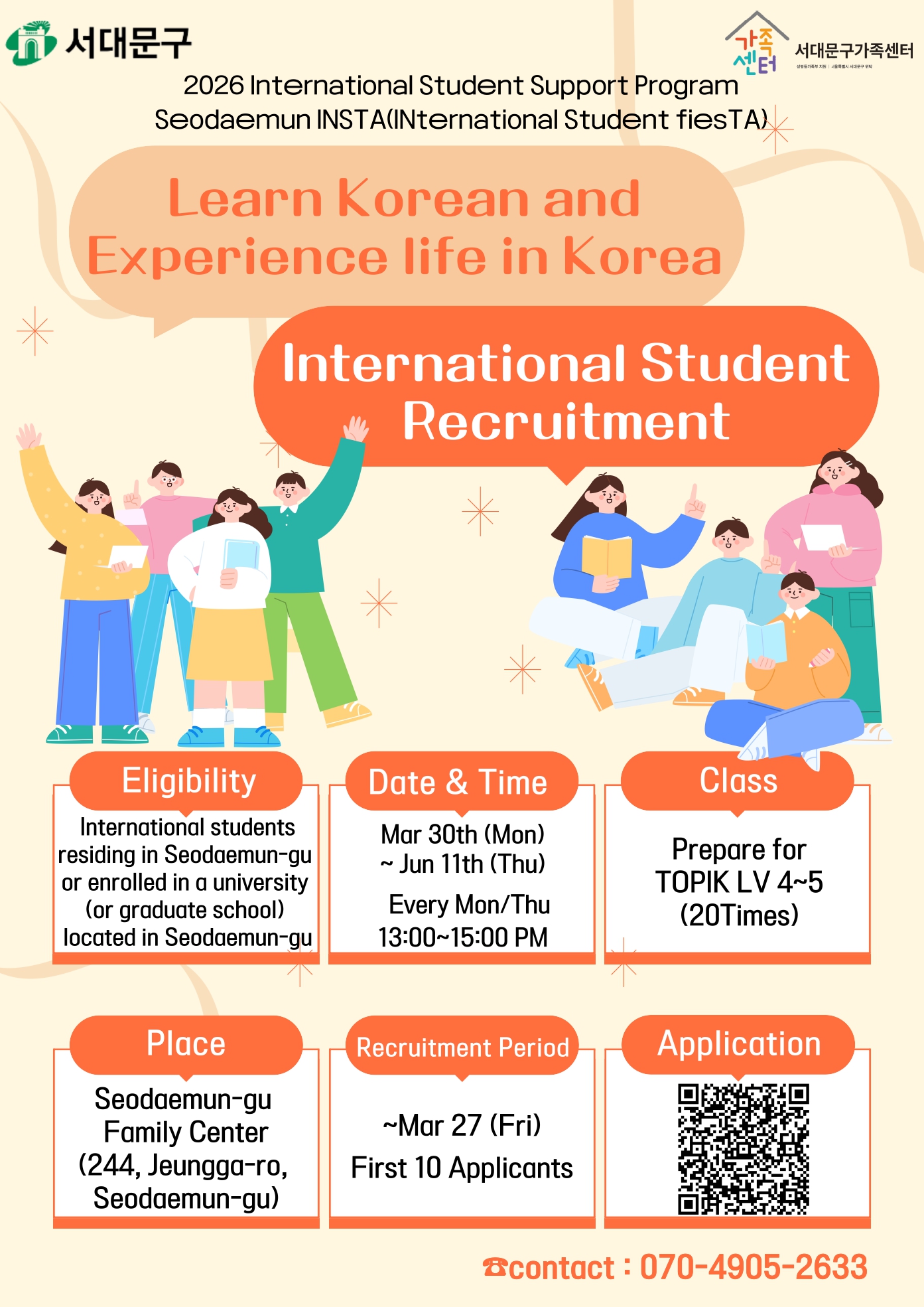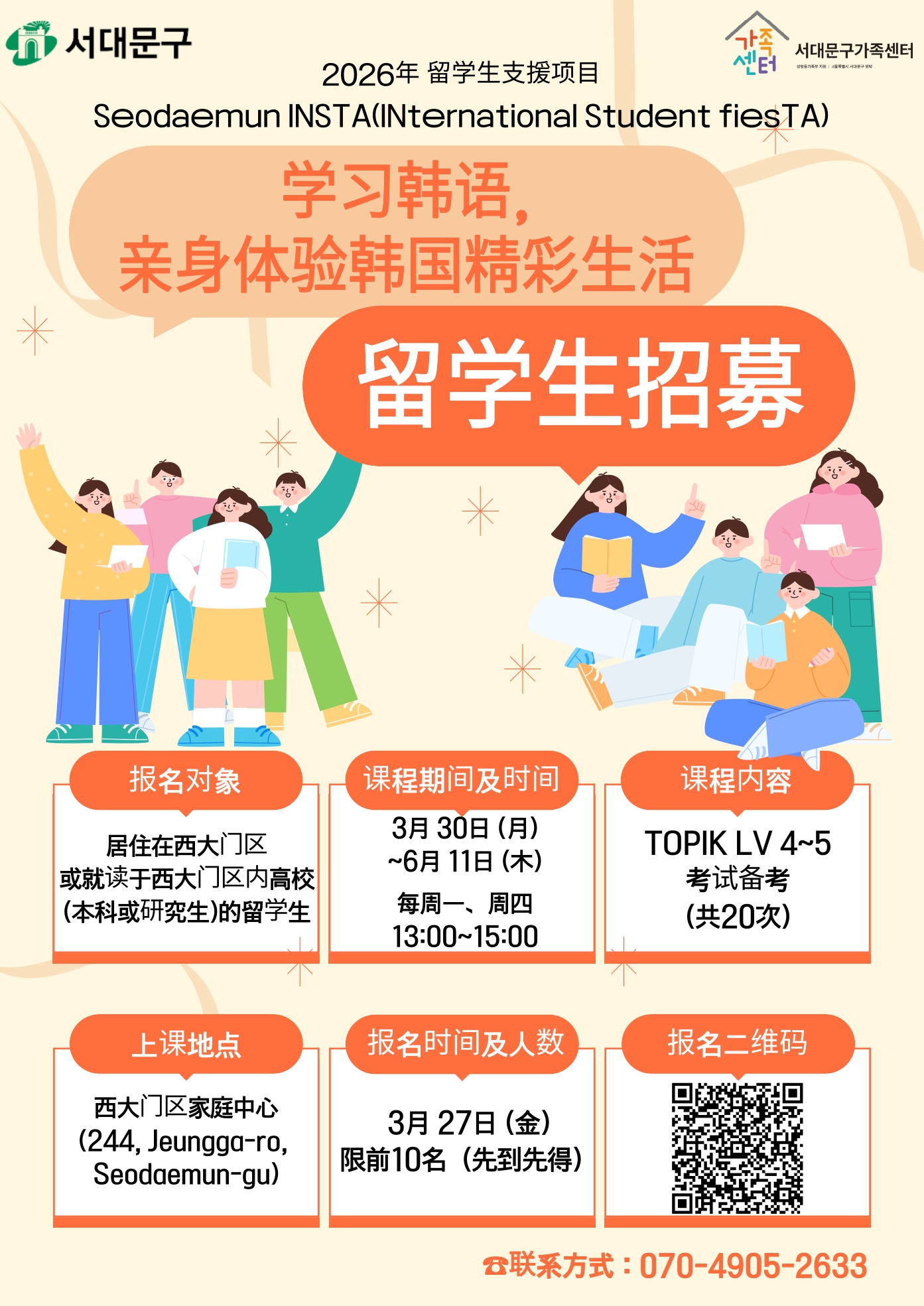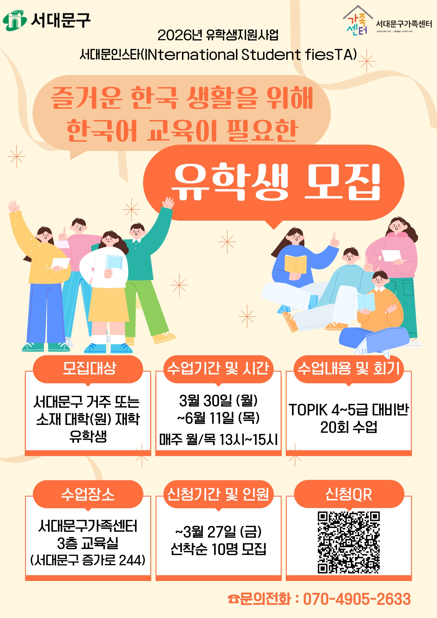 [서대문구가족센터] 입국 초기 유학생 대상 한국어 교실 프로그램